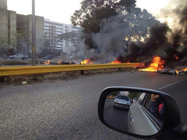 Valencia, 12 de marzo de 2014.- Una vez más, desde primeras horas del día se registran protestas en el distribuidor Mañongo. Esta vez, un grupo de manifestantes trancaron la Avenida Feo La Cruz a la altura del distribuidor (debajo), donde procedieron a la quema de cauchos.