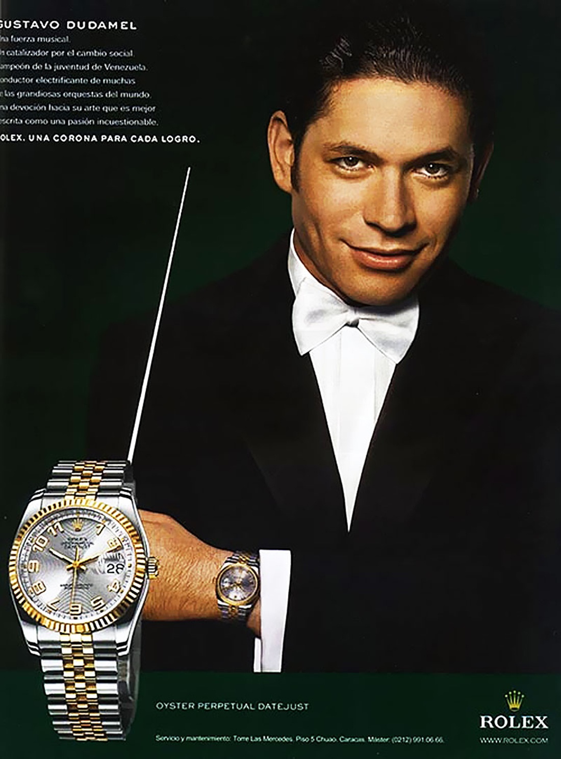 Las excusas de Dudamel ante los reclamos de Gabriela Montero son débiles, no convencen a nadie y son propios de quien ya no le duele Venezuela. Lo demuestran varios hechos: uno, la noticia que da el Huffington Post de que el mismo día que publicó sus excusas, el 14 de este mes, se debía reunir con Frank Gehry (el exitosísimo arquitecto californiano de origen canadiense), para discutir el proyecto de una sede del Sistema en Barquisimeto. Otro, oírlo mencionar como famoso habitual, en el californiano y muy americano Ellen De Generes’ Show; y uno más, el verlo como modelo publicitario globalizado de una marca de reloj. En nada de eso figura la música, simplemente se integró al mundo californiano y al comercio internacional. Es en su nueva realidad donde busca quien construya en su ciudad natal, se sentirá cómodo cuando lo nombran afectuosos en los talk-shows y participa en el mundo comercial planetario. Es lógico pues que Dudamel vea a Venezuela sólo como la sede del Sistema, y no como una sociedad en conflicto. Venezuela es su coartada, el escenario que lo identifica como buen salvaje para el Primer Mundo. Pero ese origen es sólo argumento, anécdota, accidente. Actúa como describe la literatura y los cuentos populares: se asimiló a otra realidad cultural, social y económica y mientras lo va haciendo la anterior le importuna. Para Dudamel la crisis venezolana y sus dolientes son un inconveniente, una molestia. Y su cinismo está precisamente en aparentar lo contrario, en ocultar lo que sabe que existe hablando en términos dulzones de la música y la paz, resistiéndose a ver hoy, por ejemplo, la infame verdad de que las brigadas paramilitares del gobierno o sus funcionarios asesinaron a cinco inocentes. En síntesis, en desconocer la inmensa crisis nuestra arropándose con palabras que no osaría decir en Los Angeles.